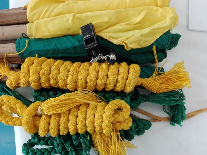 Os Árbitros Laterais, trabalham munidos de bandeirinhas nas cores VERDE e AMARELA, para pontuação dos(das) Atletas que se encontram identificados pelas mesmas cores, nos CORDÕES usados durante a competição.